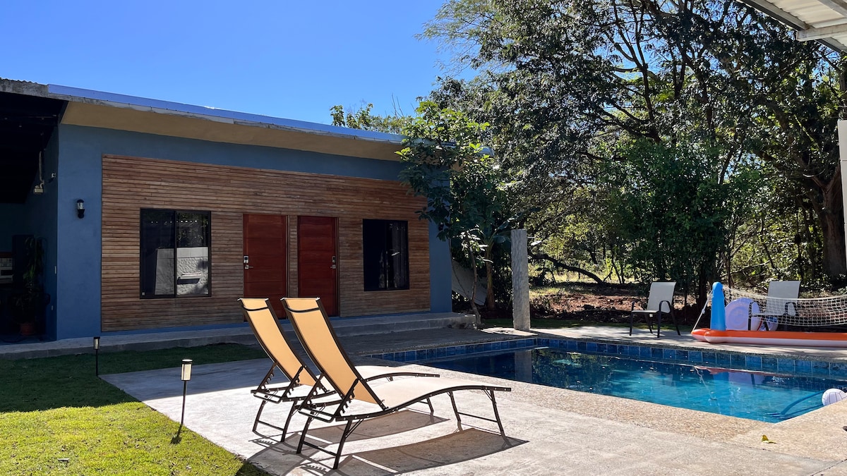 Apartment near the mountain in a rural street with a natural tropical environment, neighborhood with a lot of privacy, quiet 15 minute walk to Playa del Coco, close to supermarkets, ideal for biking or running, small pool for 4 or 5 private people, garden with stone, full kitchen to use, bathroom with open shower so you will have a different experience when taking the shower, space to work, nature ,glamping experience
