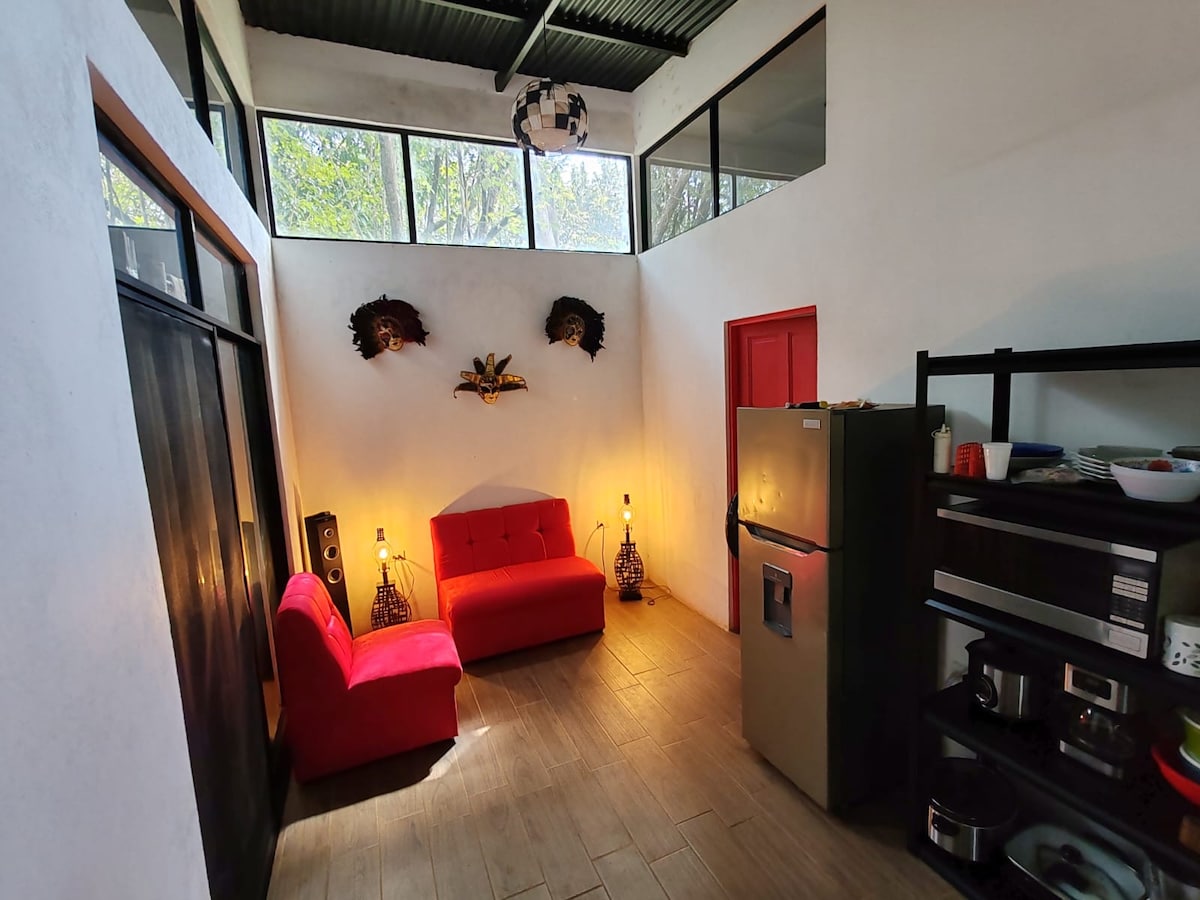 The "Orosi 2" container studio is located on a half-hectare property on the way to the Papagayo Peninsula off of Route 253. Ovaj potpuno opremljeni kontejnerski studio ima klima-uređaj, internet, osnovnu kuhinju, prostor za sjedenje na otvorenom, bračni krevet i kupatilo pune veličine. „Orosi 2” može da primi najviše 4 osobe. Na zahtjev se u kuhinju može dodati bračni krevet.