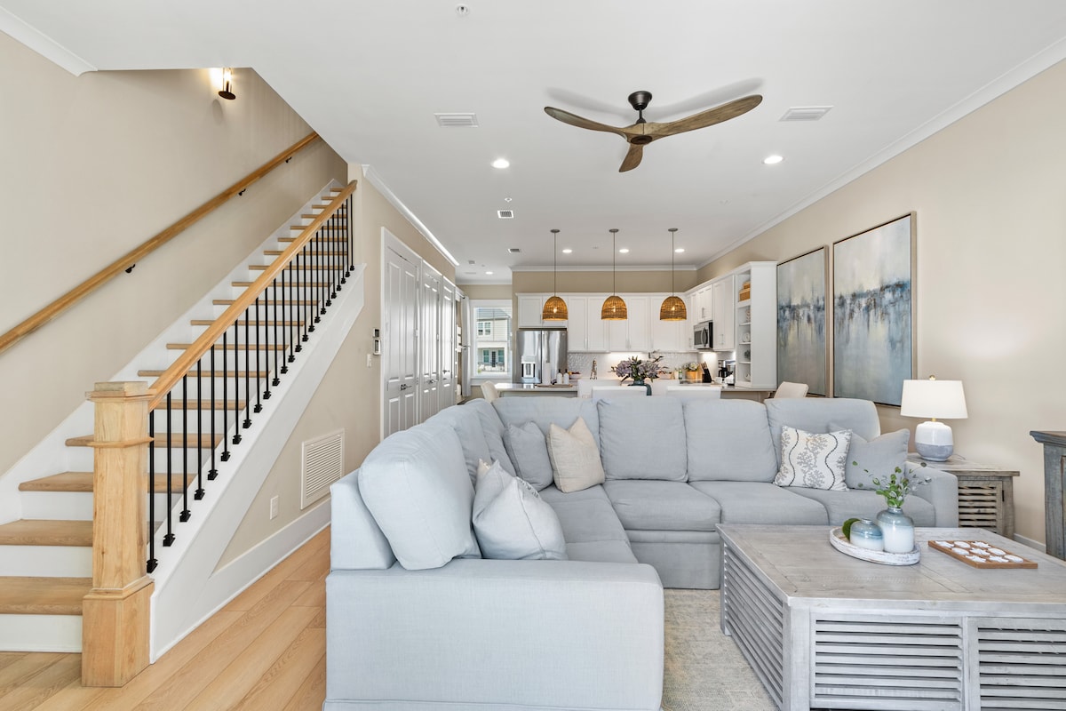 Dođite da pobegnete na bele peščane plaže i smaragdne vode u Plavoj plimi u zalivskoj obali, AL! Ovaj prelepi dupleks je stručno uređen i udoban za grupe od 12 osoba ili manje. Kratka 4 minuta hoda do plaže i pješačka udaljenost do lokalnog popularnog mjesta, The Hangout-a, kao i desetina prodavnica i restorana. To je savršena lokacija za opuštanje, opuštanje pored ognjišta ili igranje odbojke napolju pored bazena! Bazen se deli sa drugim dupleksima u kompleksu.