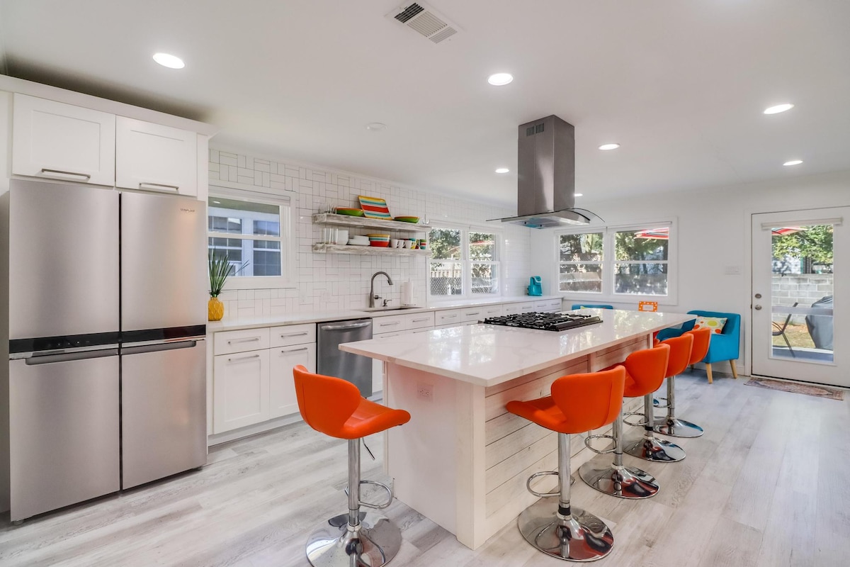 Dobro došli u The Billfish, vaš odmor na obali vas čeka u ovoj zadivljujućoj novoj konstrukciji samo nekoliko koraka od plaže Gulfport. Smještena na uglu ulica Kovan Roud i Bič Bulevar, ova moderna kuća na plaži nudi pogled na Zaliv koji oduzima dah i jednostavan pristup glavnim atrakcijama obale. Prostor je opremljen svježim priobalnim dekorom i sadržajima prikladnim za porodice. Bilo da posmatrate izlazak sunca uz kafu na trijemu ili planirate svoju sljedeću avanturu, Bilfiš pruža savršenu mješavinu udobnosti i života na obali.