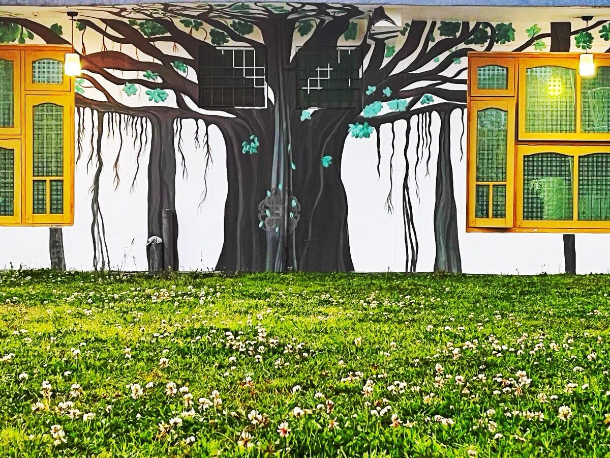 Pobjegnite u našu ručno izrađenu kuću na drvetu u Bir, indijskom žarištu paraglajdinga. Ovo ekološki osviješteno utočište savršeno je za parove, porodice ili prijatelje. Može da primi do 4 gosta i ima samoposluživanje, sa uključenim parkingom. Okruženi čajnim vrtovima i samo 4 minuta od pijace, uživajte u slobodi istraživanja i opuštanja. Kuvajte sopstvene obroke u indukcionoj kuhinji i doživite održiv boravak. Rezervišite sada i uživajte u jedinstvenom zelenom odmoru!