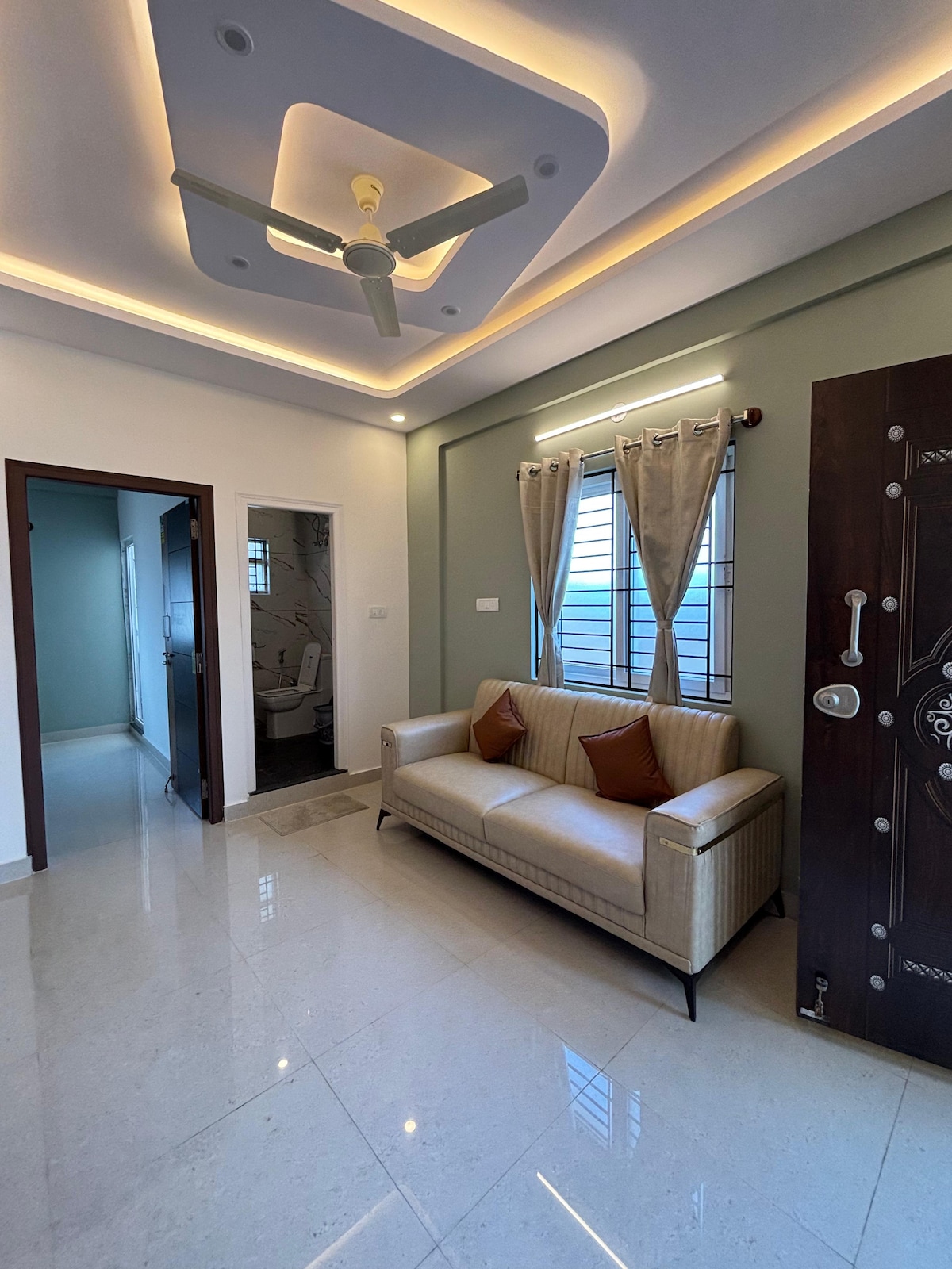 Dobro došli u Warm Green 1BHK Retreat, mirno, elegantno utočište u AECS Layout, Brukfild, nekoliko minuta od Maratahalija. Dizajniran u umirujućim zelenim tonovima i sa toplim osvetljenjem, ovaj dom nudi udoban dnevni boravak, raskošnu spavaću sobu, brzi Wi-Fi i Smart TV sa OTT aplikacijama. Potpuno opremljena kuhinja olakšava duže boravke. Nalazi se u blizini tržnog centra Brukfild, kafića, supermarketa i ima brz pristup ORR-u, Vajtfildu i IT čvorištima, savršeno za rad ili opuštanje. Video-nadzor u predvorjima za dodatnu bezbednost.