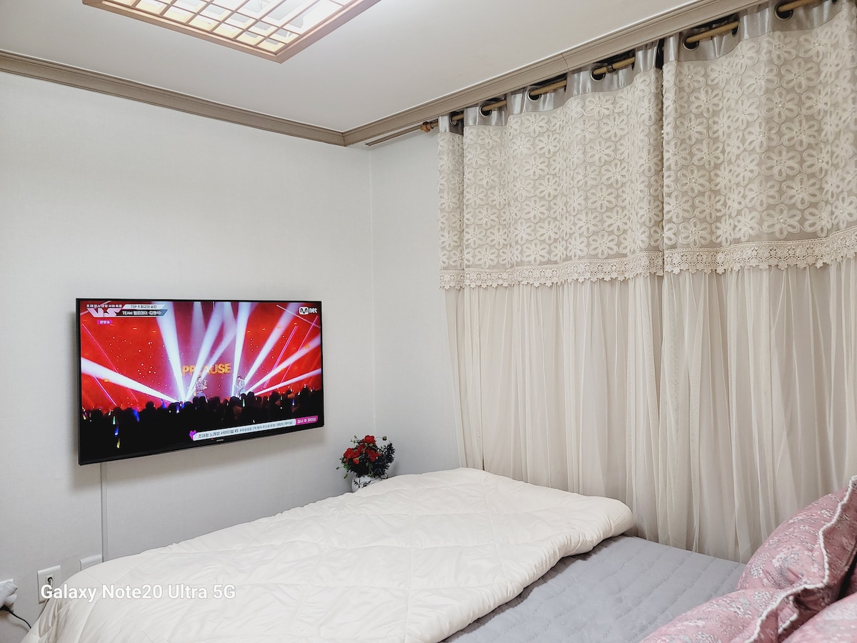 안녕하세요 중심부에 자리하여 입지적 편리함과 가족과 친구들이 머물기에 적합한 공간으로 준비했습니다. 포근하고 아늑한 H스테이와 함께 전주에서 즐겁고 행복한 기억을 남겨보세요. 💛고속,시외버스터미널 도보가능 💛롯데백화점과 이마트가 길 건너 도보로 이용 💛한옥마을,객사,덕진공원 등 주요 관광지를 차로 10분이내 💛숙소앞 천변 산책길 남부시장까지 이어짐(자전거 대여소 숙소 길건너에 위치) 💛숙소내 청결유지 (침구류 매일 교체) 💛집앞 주차공간 이용(대수에 상관없이 가능) 숙소에 대해 궁금한 사항은 언제든 문의 주세요