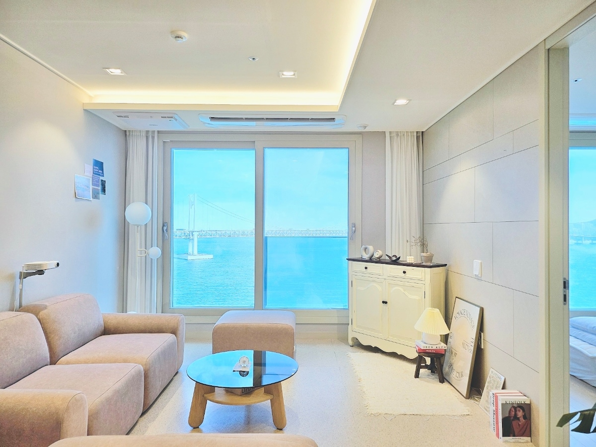 #. This is a legal accommodation officially registered as a foreign tourist city homestay business. ♣ Full ocean view with the entire Gwangan Bridge ♣ Free parking ♣ Non face-to-face check-in (3:00 PM) ♣ Store luggage before check-in (please inquire in advance) ♣ Host manage room conditions and respond to guest ◈ Gwangalli Beach - 3 min walk ◈ Millac the Market - 1 min walk ◈ BEXCO & Busan Cinema Center & Shinsegae Dep. - 7 min by car ◈ Haeundae - 15 min by car ◈ Gwangan Station - 20 min walk