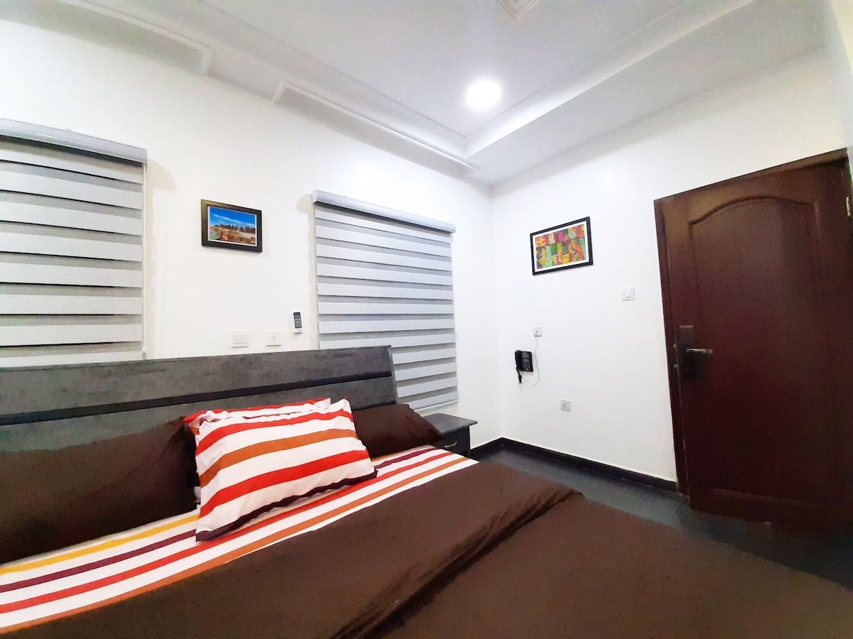 Ovo je privatni, redizajnirani apartman sa jednom spavaćom sobom i čajnom kuhinjom koji se nalazi u hotelu sa punom uslugom i visokim stepenom bezbednosti u Garki II, sa privatnošću i udobnošću sopstvenog prostora u stilu apartmana, savršen za poslovne putnike, porodice i produžene boravke. Uživajte u vrhunskim pogodnostima kao što su; Bazen Privatni balkon i spoljašnje dvorište Potpuno opremljena teretana Restoran u sklopu objekta Brzi Wi-Fi, Netflix i DSTV Napajanje i klima-uređaj 24/7 Svakodnevno čišćenje Obezbjeđenje non-stop i nadzorne kamere Pristup liftu
