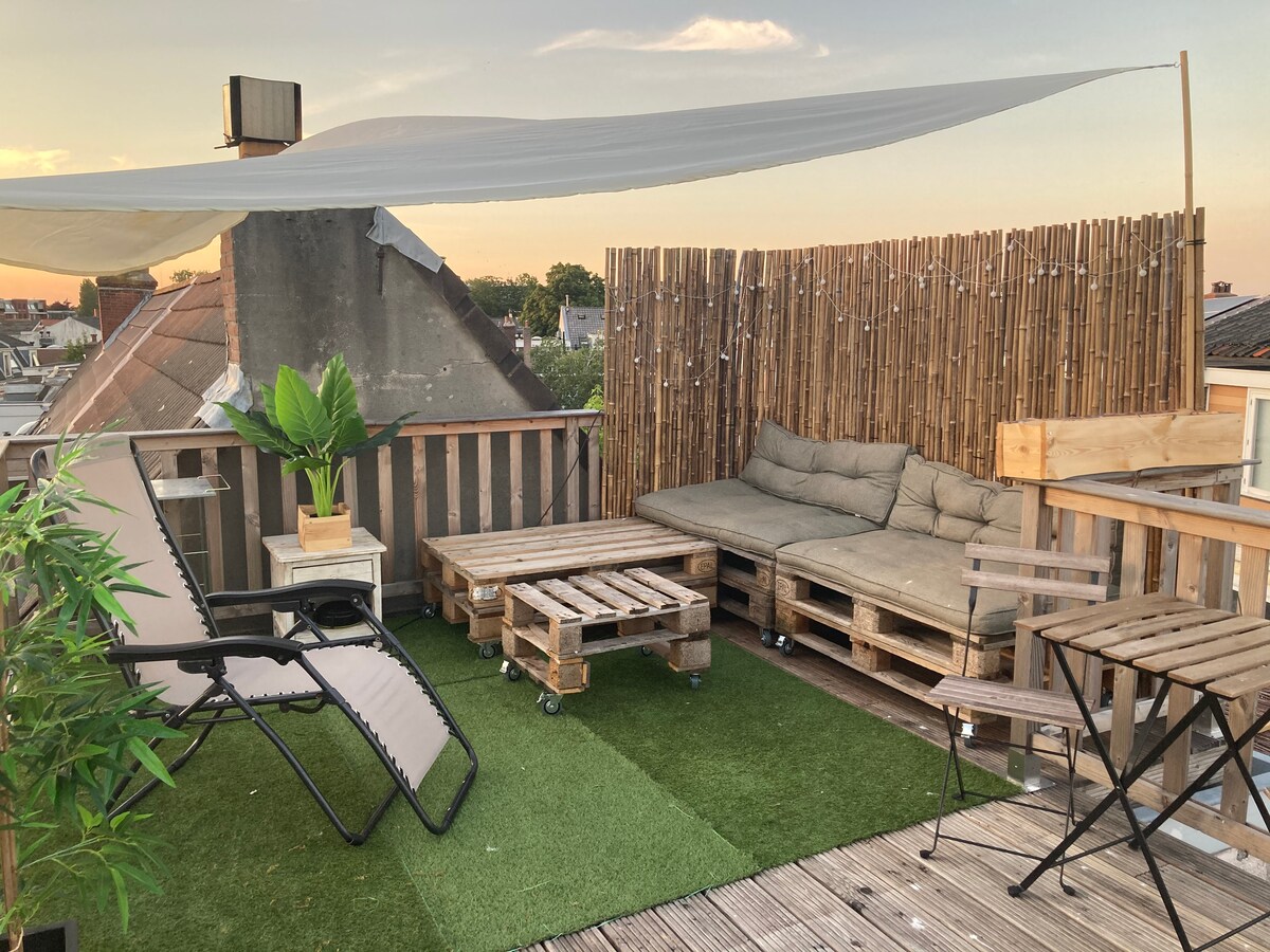 Dobro došli u naše prijatno utočište u srcu Harlema, predivne amsterdamske male sestre! Lokacija: Smješten u starom gradu, naš stan od 75 m2 udaljen je samo 5 minuta hoda od glavnog trga, De Grote Markt. Bićete okruženi stoljetnom arhitekturom, slikovitim kanalima i živopisnom energijom ovog istorijskog holandskog grada. Posebnosti apartmana: 2 spavaće sobe: Savršeno za porodice ili prijatelje koji putuju zajedno. Terasa od 30 m2: Pijuckajte jutarnju kafu ili uživajte u čaši vina.