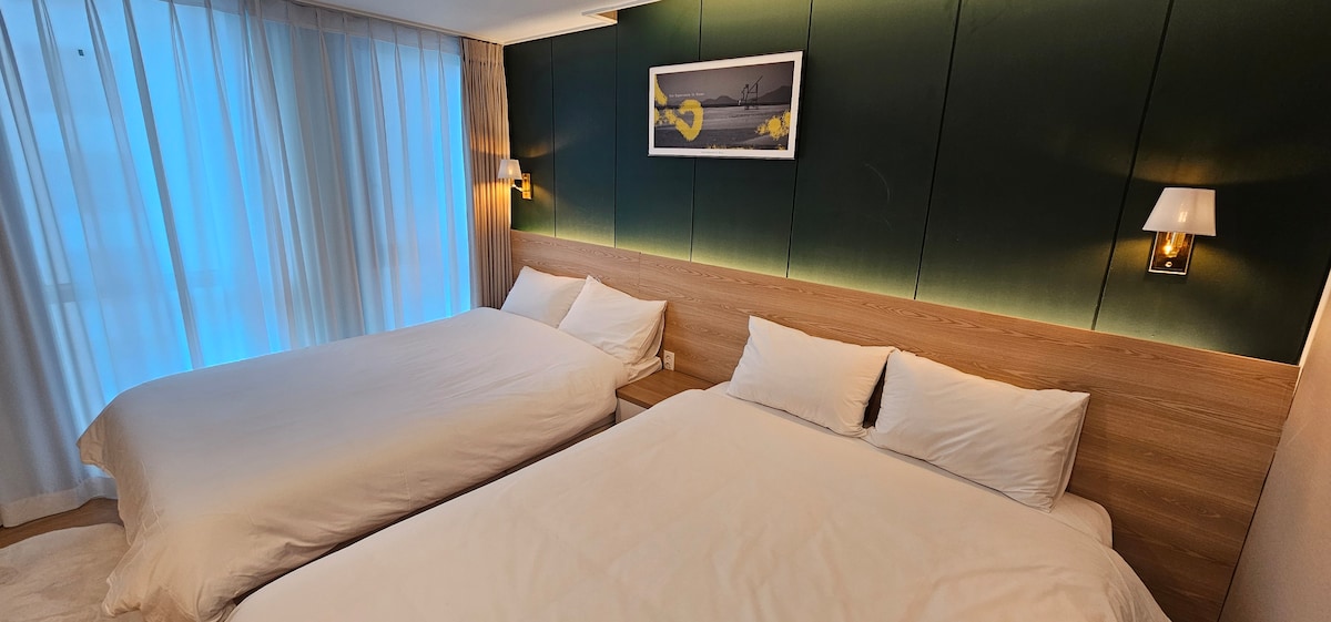 Doživite najbolji boravak u ovoj novoj luksuznoj rezidenciji koja se nalazi na 3 minuta hoda od plaže Haeundae! * Ovo je jednosobna soba za dvije osobe. * Ovo je pogled na grad i ne možete da vidite more u sobi. * Higijenski proizvodi (peškiri, kese za smeće itd.) obezbeđuju se besplatno na zahtev. * Rana prijava i kasna odjava koštaju 10.000 vona po satu i možda neće biti moguće u zavisnosti od rasporeda čišćenja tog dana. (Ako vam zatreba, obratite se domaćinu na dan dolaska:)