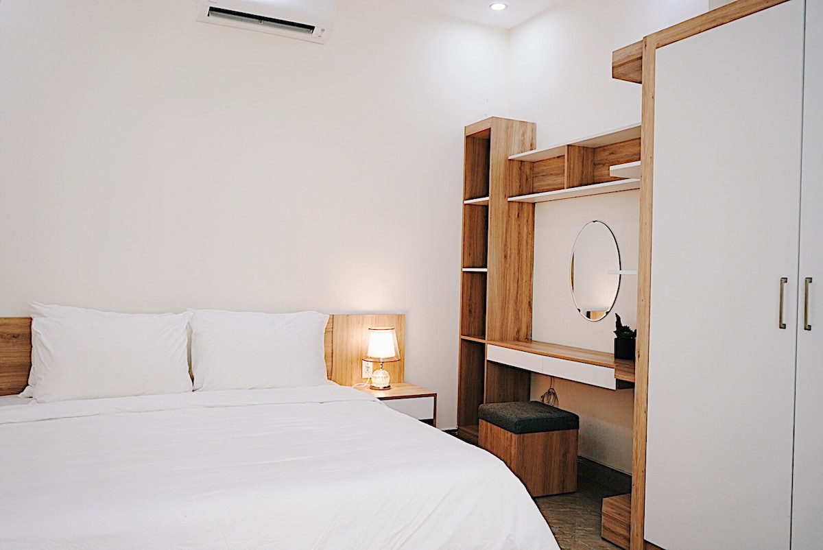 Nalazi se u srcu prelepog grada na plaži - Danang. Ovaj stan nudi moderne i udobne stanove sa modernom arhitekturom. Stan se sastoji od 1 bračnog kreveta, 1 kupatila, kuhinje i dnevne sobe, potpuno opremljene. Takođe možete da koristite divan bazen na krovu. Praktična lokacija: 5 minuta taksijem da biste dobili Zmajev most. 10 minuta taksijem od aerodroma, železničke stanice. 15 minuta do kongresnih centara kao što su BigC, prodavnice, restorani...ili tržnica Kun, tržnica Han pješice.