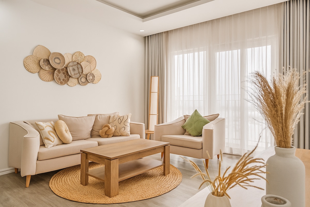 Welcome to a thoughtfully designed 2-bedroom, 2-bathroom apartment where Japanese aesthetics meet modern comfort — an ideal retreat for professionals, couples, or families seeking a peaceful long-term stay near Da Nang’s coastline.