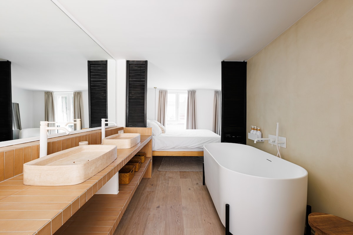 Vous arrivez en train. Deux minutes plus tard, vous poussez la porte d’un lieu pensé pour ralentir et déconnecter. Bienvenue à L’Écrin d’Ailleurs, maison de ville design au cœur d’Ath, entièrement rénovée. Suite parentale avec baignoire îlot, salon lumineux, cuisine équipée et garage privé. Idéal pour une escapade à deux, un week-end slow travel ou un séjour confortable à 15 min de Pairi Daiza. 💬 Une question avant de réserver ? Écrivez-nous.