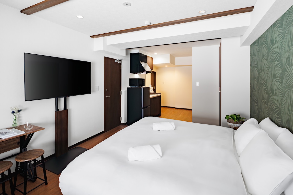 The perfect place for teleworking. Guest will enjoy a modern, beautifully renovated studio apartment just a couple of minutes walk to the center of Happo Village. This apartment comes complete with a kitchenette, bathroom, Wifi, and Netflix. Guests will also have access to the large guest common area where they can work remotely, enjoy a game of pool or foosball or just relax.