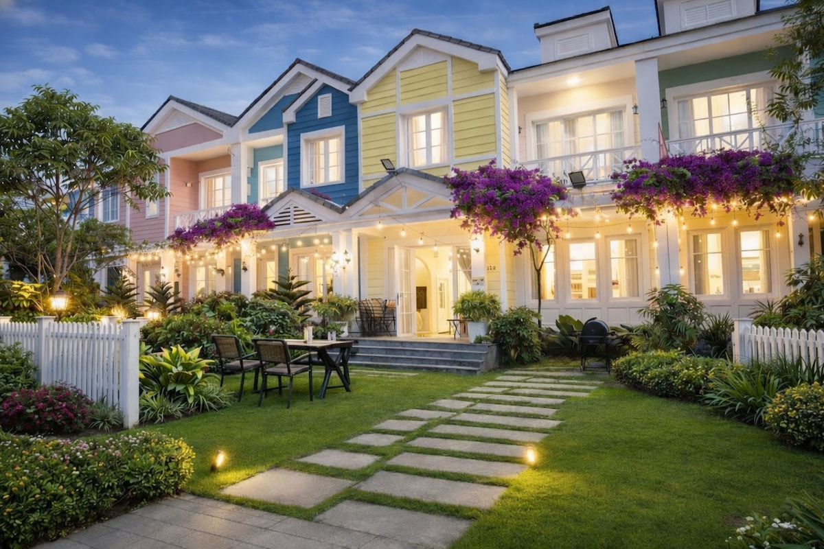 Trải nghiệm kỳ nghỉ tuyệt vời cùng gia đình và bạn bè tại căn biệt thự sang trọng, chỉ cách biển vài phút đi bộ. - 3 phòng ngủ rộng rãi, 3 nhà vệ sinh tiện nghi - Sức chứa thoải mái 10–15 khách - Thiết kế hiện đại, tinh tế, ngập tràn ánh sáng tự nhiên - Ban công và giàn hoa giấy rực rỡ, mang đến không gian thư giãn và sống ảo tuyệt đẹp. - Phòng khách lớn, bếp đầy đủ dụng cụ để bạn có thể tổ chức bữa tiệc gia đình hoặc BBQ cuối tuần - Sân vườn thoáng mát, hàng rào trắng lãng mạn riêng tư