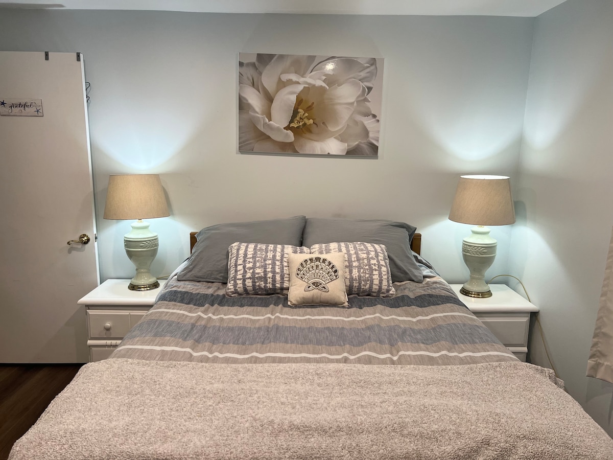 Ovaj stan nije na obali! To je kratka šetnja, manje od 3 minuta lagane šetnje do plaže Hampton i svih atrakcija. drveni podovi Spavaća soba ima bračni krevet i 1 futon Dnevni boravak ima 2 kauča i stolicu za ljuljanje kuhinja sto i stolice za doručak Dvostruki Kurig aparat za kafu. Mikrotalasna rerna. Lonci i tiganji Šporet/rerna i frižider u punoj veličini Tanjiri, pribor za jelo itd. Wi-Fi /smart TV Mali hipoalergeni kućni ljubimac je dobrodošao nakon što razgovaramo o uputstvima i naknadama.