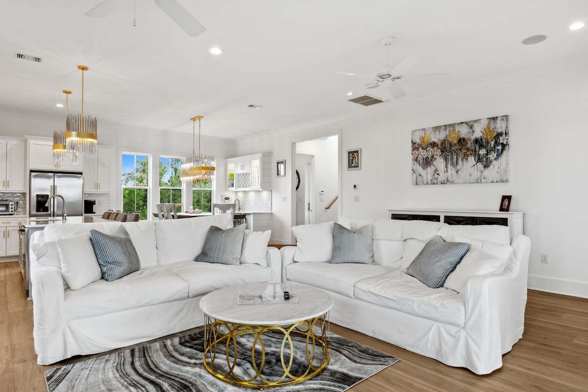 Cool Vibes and Vacay life at The Flamingo our Brand New Custom Built Home at the Beach in Waveland. Električni punjač za automobile, više trpezarija, električni kamin, spoljni tuš sa toplom i hladnom vodom, ekran na zadnjem trijemu, potpuno ograđeno zadnje dvorište, zabavno unutrašnje dvorište sa ognjištem i stolicama Adirondack, Wi-Fi, pametni televizori i još mnogo toga. Mirna lokacija samo nekoliko minuta od pijeska. Poželećete odmor tokom cijele godine. Izuzetno izgrađeno imajući vas na umu. Jedinstven i luksuzan.