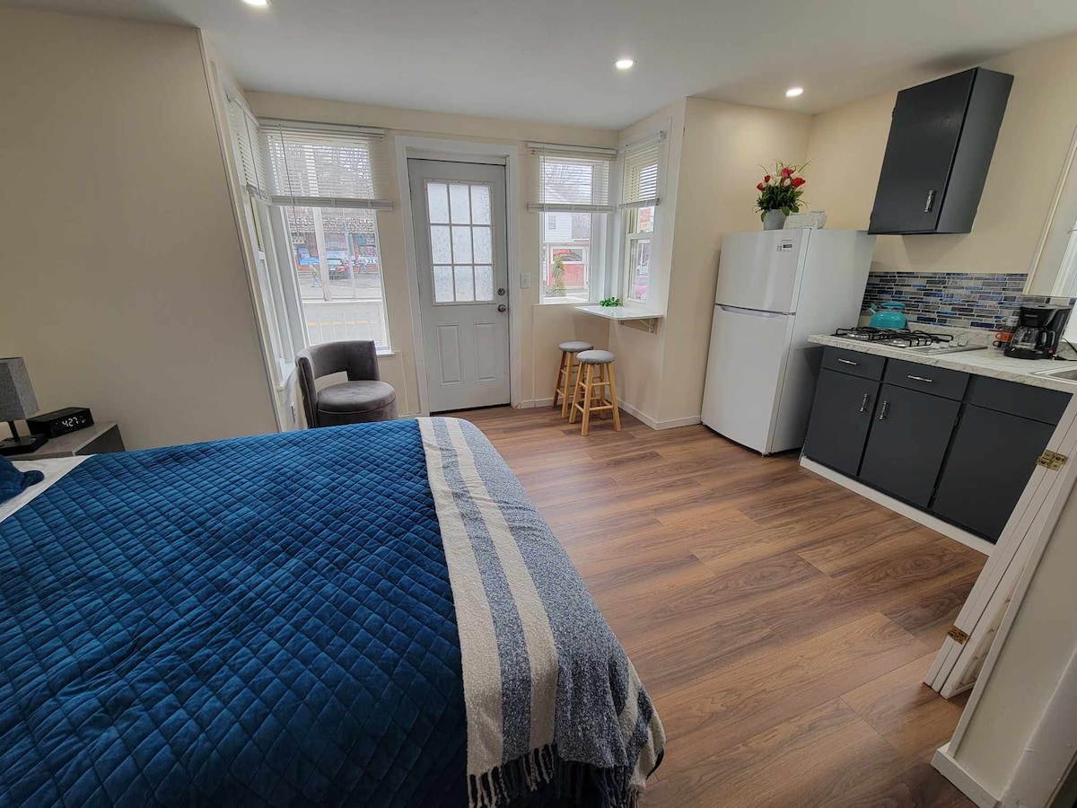 Nalazi se u srcu istorijskog centra grada Lenox. Predivno renoviran prostor, potpuno opremljen za sve vaše potrebe. U kuhinji se nalazi sto za dvoje, aparati od nerđajućeg čelika i niz osnovnih potrepština za kuvanje. Dnevni boravak ima udoban odjeljak i TV sa ravnim ekranom za opuštanje. Wi-Fi je dostupan u celom prostoru. Centralna toplota i vazduh za udobno okruženje u bilo koje doba godine. Obezbeđena je sva posteljina i peškiri.