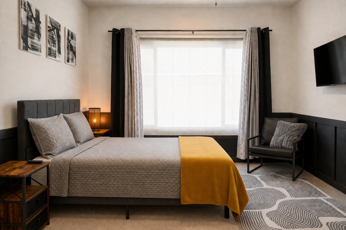 Relax in this calm, stylish 3-bedroom home in Visalia, comfortably sleeping 6. The perfect modern base for exploring Central California, it features a spacious backyard with two fire pits. Located just a 45-minute drive from Sequoia National Park, it's an ideal retreat after a day of adventure. Enjoy a fully-equipped kitchen, open-concept living, and easy access to local dining and shopping.