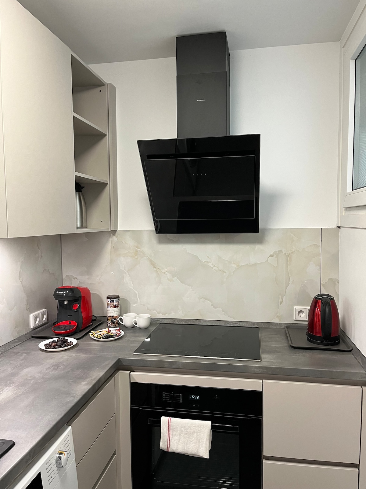 Stan se nalazi u centru Laatzena, na samo nekoliko minuta od Messe Hanovera i zag Arene. Moderan je, moderan i potpuno opremljen – kao hotelska soba s 5 zvjezdica. Kupovina, restorani i kafići su u šetnji. Idealno za poslovne putnike, goste sa sajma ili kratke turiste koji traže udobnost i vrhunsku lokaciju.