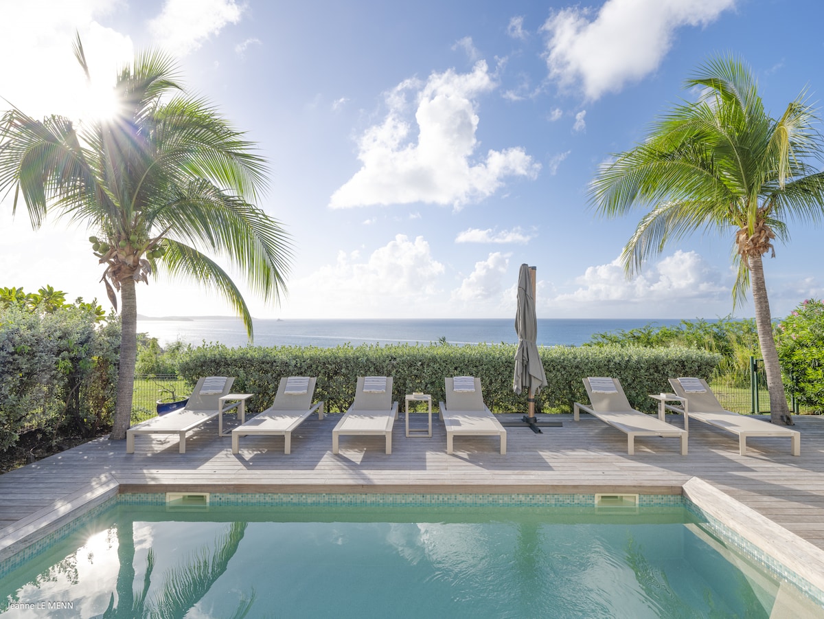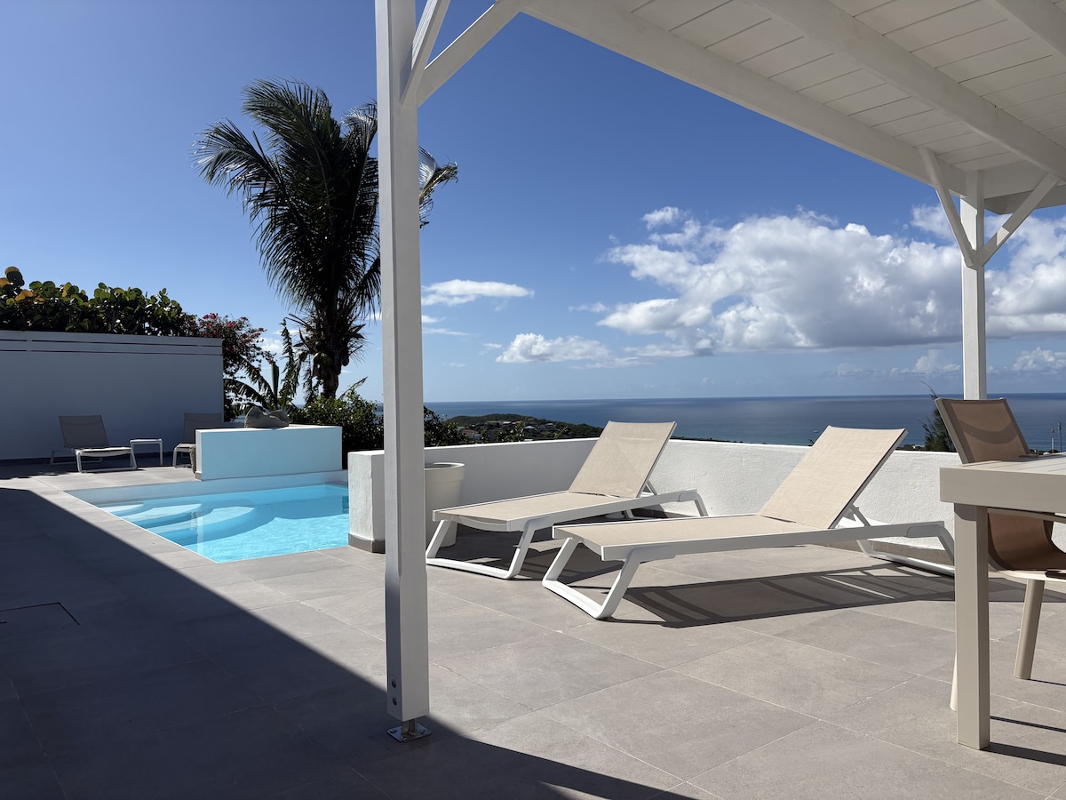 Villa I LOVE VIEW is a oasis of tranquility – with its private pool (naturiz possible), large terrace and luxury kitchen space. Dođite i otkrijte pogled na više nijansi plave boje dok se opuštate na ležaljkama pored bazena sa odsjajem od zen prirodnog kamena Nalazi se u Cul de Sac, okrenut prema Saint Barth , Pinel Island i Baie Orientale. U blizini najljepših plaža na ostrvu, restorana, zabave na vodi, to je savršeno mesto za vaš odmor.