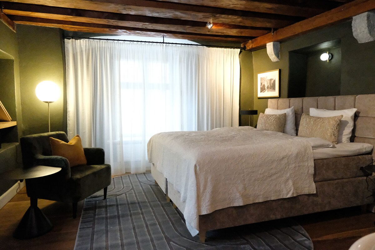 Svetla i prostrana bračna soba, okrenuta prema užurbanoj ulici Viru. Obezbeđena je čista posteljina i peškiri.