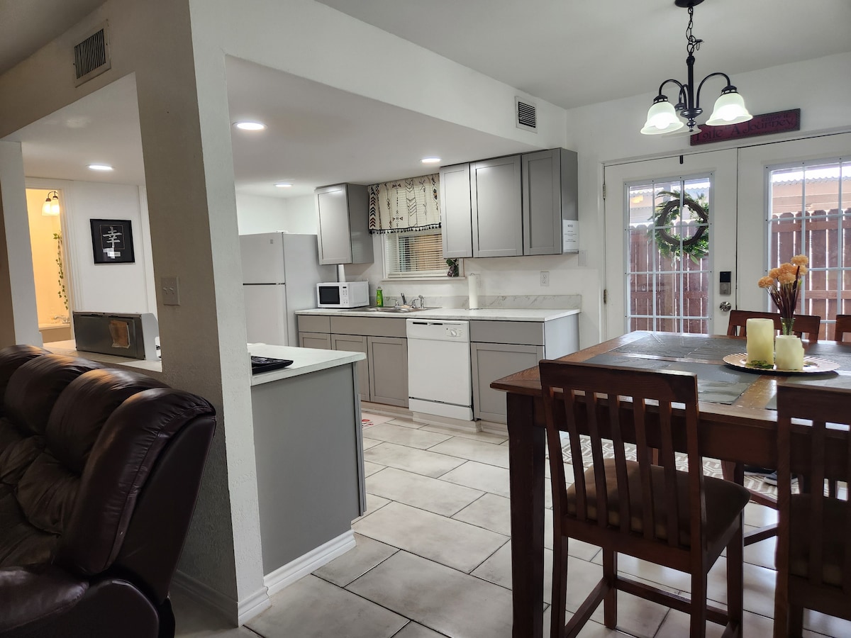 Doble S Apartments at UTRGV, Apt #6. Great location in the heart of Edinburg - .5 miles from UTRGV, 4 miles for DHR, 1.5 miles for the Hidalgo County Courthouse. You’ll feel at home & relaxed in our newly remodeled space w/2 cozy queen size beds, smart TVs, comfortable living & dining area & a full kitchenette with all the essentials! Free WiFi, parking & access to laundry area for our guests. Security cameras are recording the perimeter of the building, parking lot & laundry area 24/7.