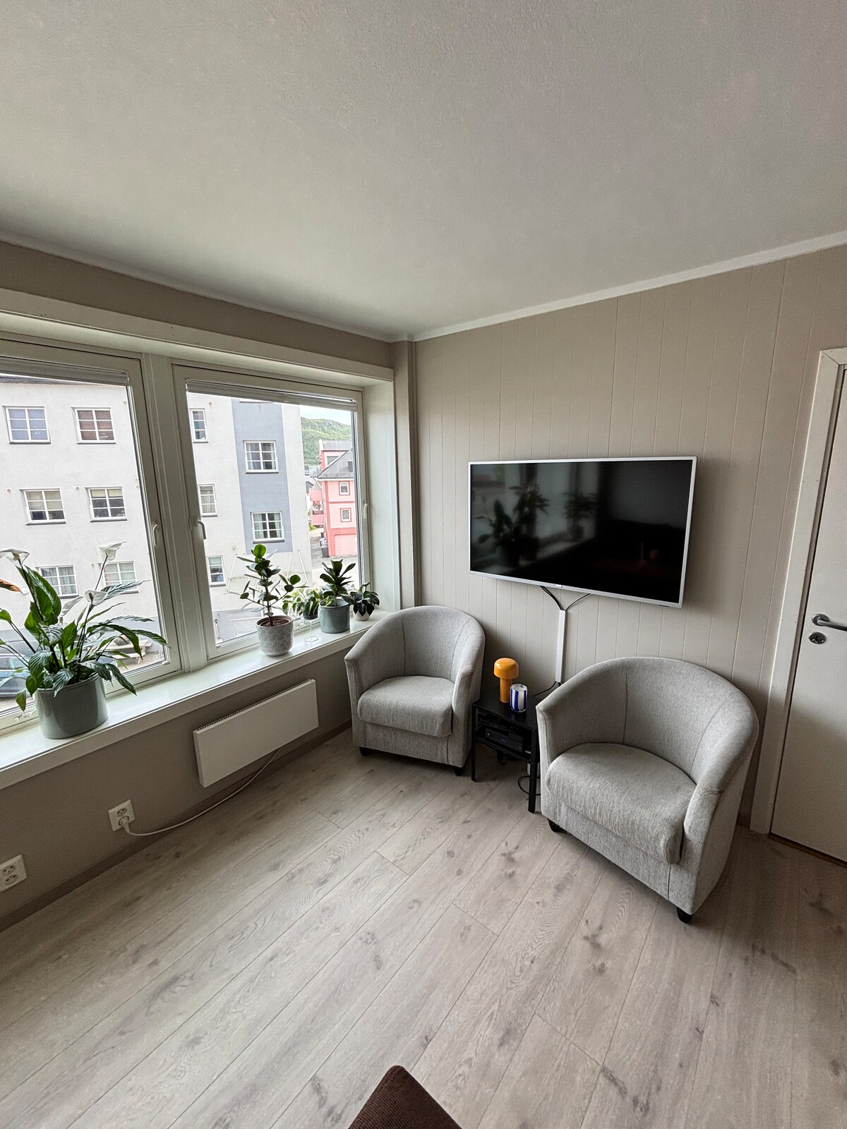 Nyt en stilfull opplevelse på et sted med sentral beliggenhet. Leiligheten er i gangavstand til sentrum, Folkeparken, sykehuset og et hav av andre fasiliteter i Harstad og omegn. Nyrenovert liten leilighet med plass til to. Parkering medfølger rett utenfor. En spasertur på omtrent 200 meter kommer du til både dagligvarebutikk og et bakeri.