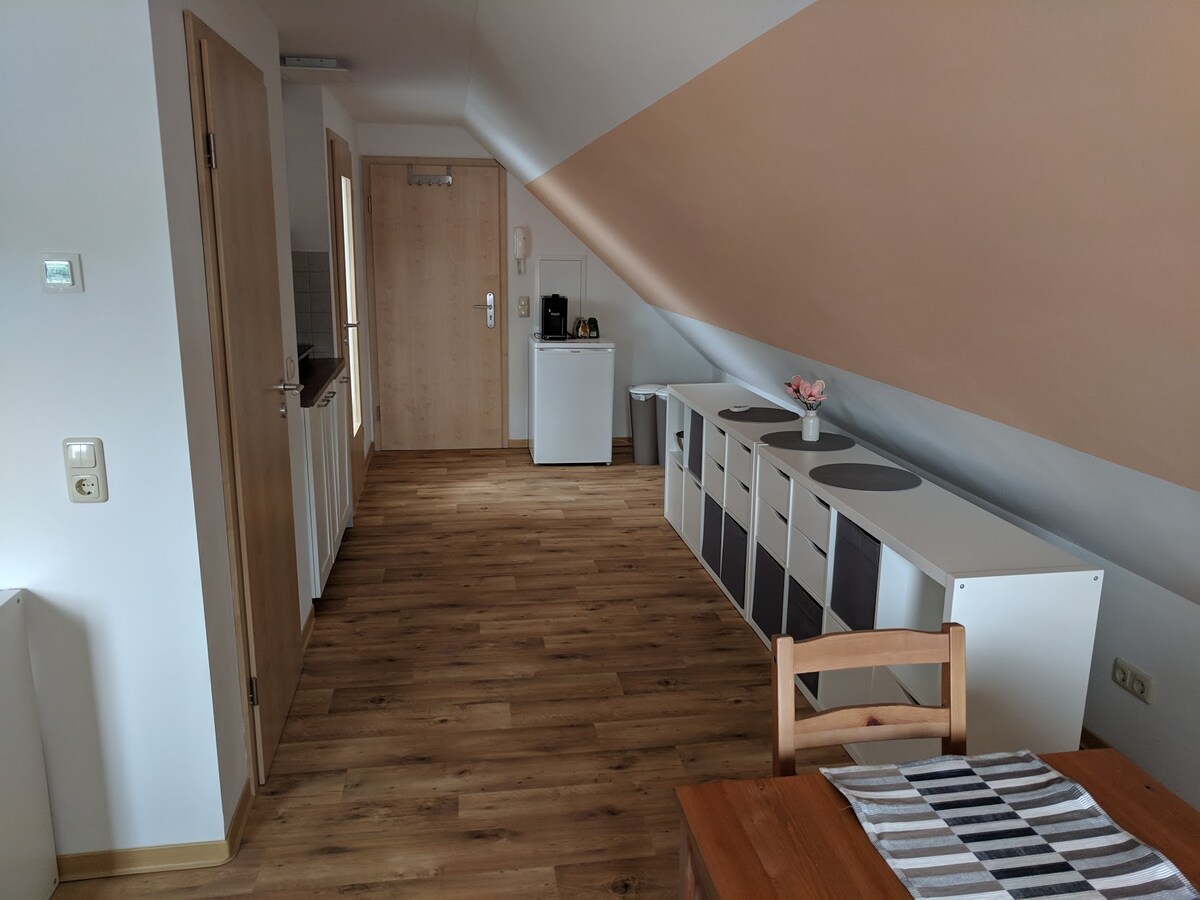 Udoban, harmoničan, moderno uređen studio za dobro raspoloženje, 34 kvadratna metra za 1–2 osobe, u potkrovlju naše stambeno-poslovne zgrade, u centru Kamenza, sa mnogim pogodnostima kao što su Wi-Fi, kablovska pametna televizija sa proširivim funkcijama kao što su Netflix i ALEXA. Idealna polazna tačka za doživljaje u našem prelijepom okruženju, šetnju ili vožnju biciklom. Železnička i autobuska stanica su udaljene oko 7 minuta, Drezden/aerodrom 40 km, Bautcen 27 km, Elbe Sandstone Mountains oko 40 km, Spreewald oko 80 km