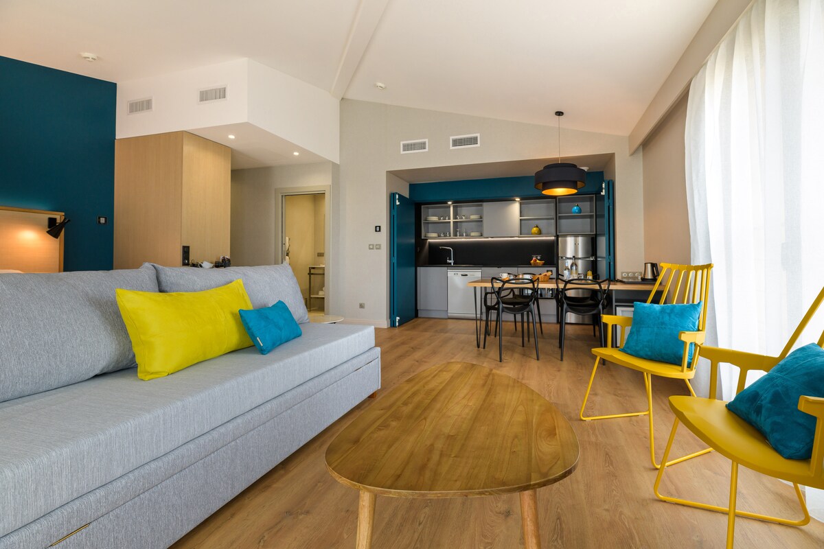 Naša turistička rezidencija sa 4 zvezdice, idealno smeštena u Ajaču, odmah iznad plaže sa prelepim pogledom na zaliv, dočekuje vas u mirnom i prijatnom naselju Aspreto. Novaya Suites ima održiv pristup sa 196 solarnih panela. Osmišljeni da se prilagode svakoj situaciji, naši smještaji vam nude fleksibilnost, udobnost i personalizovane aranžmane boravka, bez obzira na vaše potrebe: iskustvo boravka koje izgleda kao vi, u potpunoj slobodi.