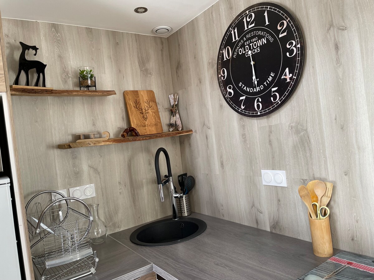 La Kabane može da ugosti do 7 ljudi. Posteljina je opcionalna usluga. Površina stana je 55 m²+ 25 m² terase Leži u ležaljci na terasi okrenutoj ka jugu, uživajte u panoramskom pogledu na planine Južnih Alpa prekrivene snegom, bez ikakvih visina. Kada je napolju hladno, zagrijte se ispred dimnjaka, sjedite na udobnoj klupskoj stolici: možete da zamislite sebe u staroj planinskoj kući iz prošlosti... ipak opremljenoj Wi-Fi mrežom, televizorom i svime što je moderno udobno.