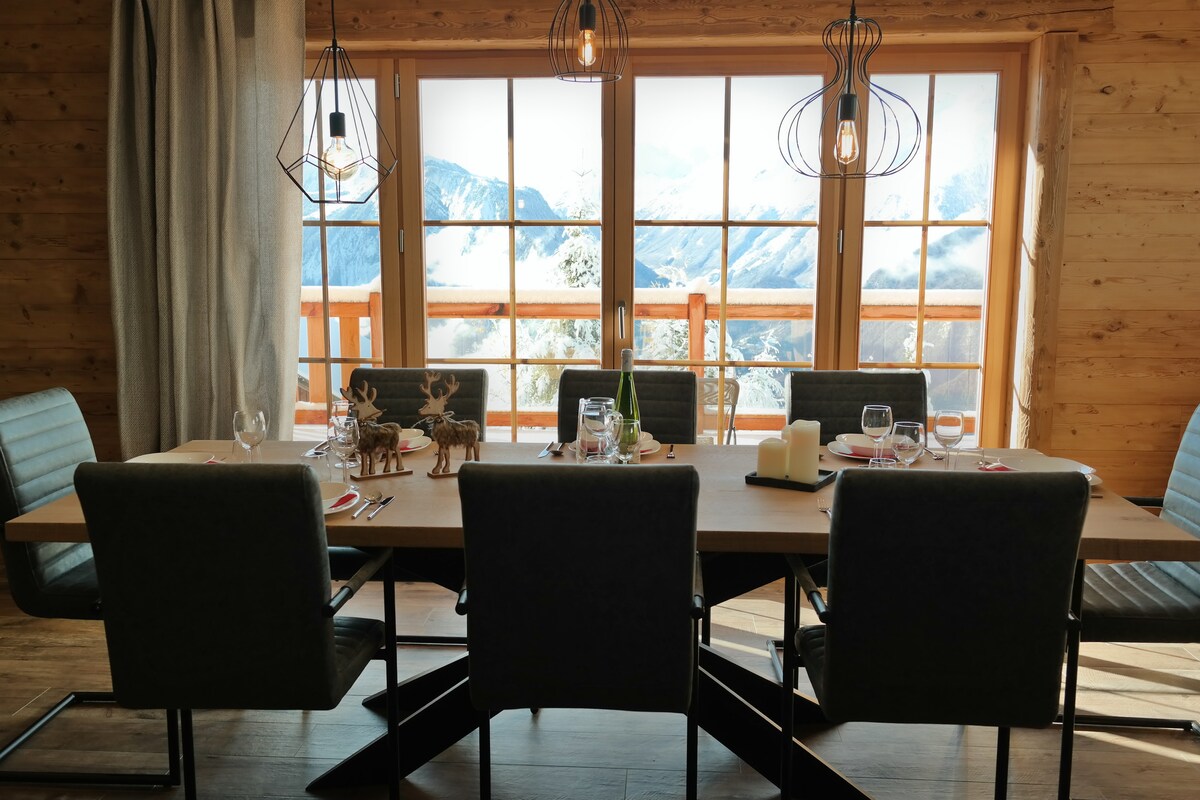 Chalet de grand standing alliant le charme traditionnel de la pierre et du bois associé à une décoration contemporaine. Exposé plein sud il offre un panorama exceptionnel sur les sommets environnants. Le chalet l’Ardoisière offre des prestations haut de gamme : - Espace bien-être avec Sauna et Hammam - Salle de jeux pour toute la famille avec baby-foot, borne d’arcade, jeux vidéos,… - Ascenseur