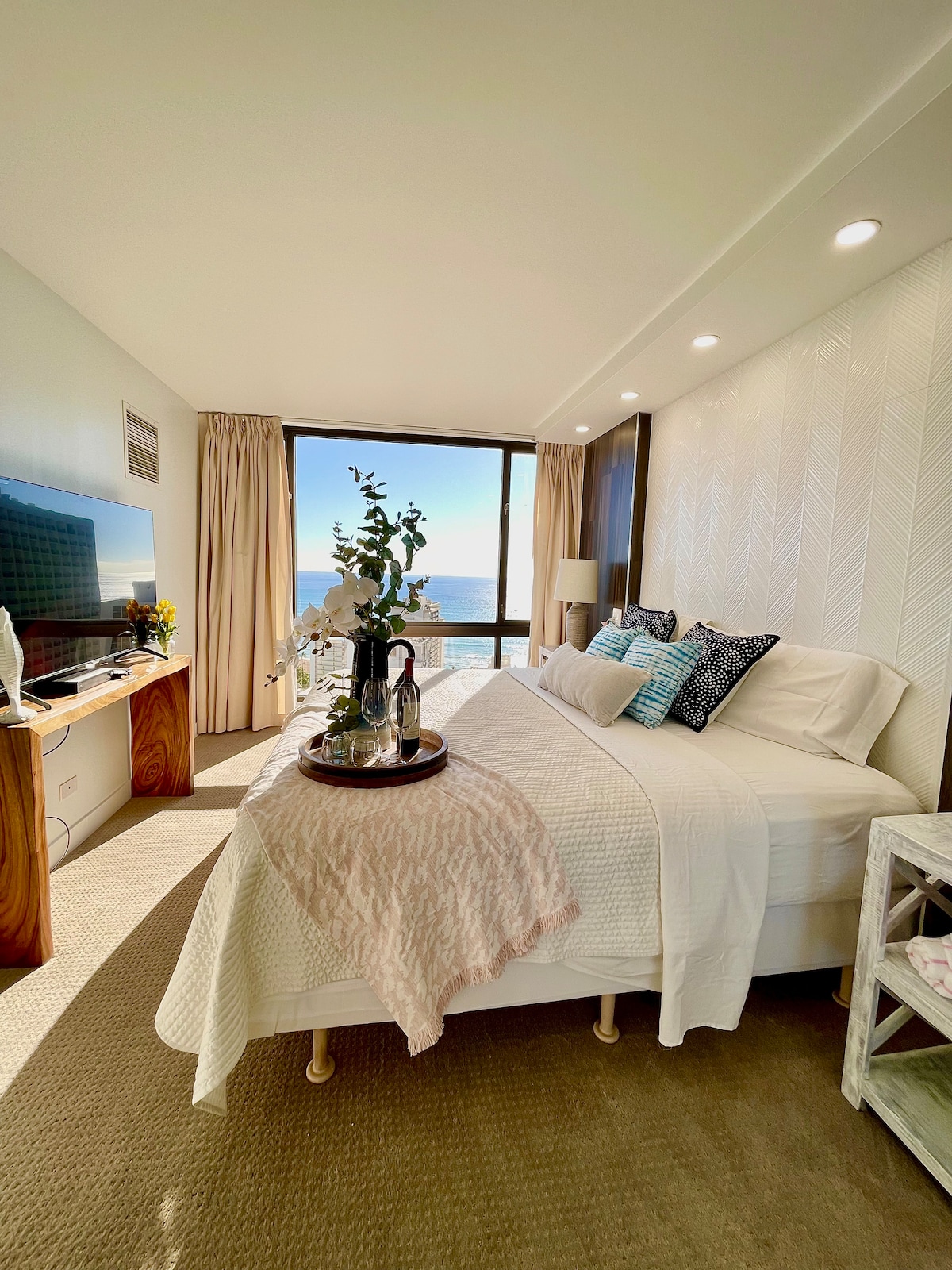 Zapanjujuće ostrvsko utočište koje će vam sigurno oduzeti dah! Nova renovirana kraljevska garsonjera nalazi se na 42. spratu u srcu centra Vaikikija. Ponaša se delimičnim pogledom na okean i jedinstvenim pogledom na ceo horizont Vaikikija. Ovo je zaista jedinstveno iskustvo koje je savršeno za parove koji slave posebnu priliku ili male grupe koje žele da stvore nezaboravne uspomene. Sa svim potrebnim sadržajima, osećaćete se kao kod kuće u ovom prelepom ostrvskom raju.