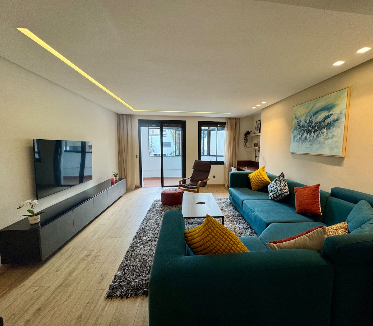 Élégant 90 m² Appartement avec un Salon spacieux et une grande suite parentale. Spacieux et confortable, idéal pour les couples, familles et voyageurs d’affaires ✅ Self check-in 24h/24 ✅ Terrasses dans tout le logement ✅ Résidence sécurisée+parking ✅ Wifi/Netflix/IPTV ✅ Cuisine équipée, 2 salles de bain 🔆 Vue panoramique depuis la suite parentale Emplacement stratégique : à seulement 5 minutes à pied du stade Prince Moulay Abdellah, parfait pour ne rien manquer des matchs de la CAN 2025