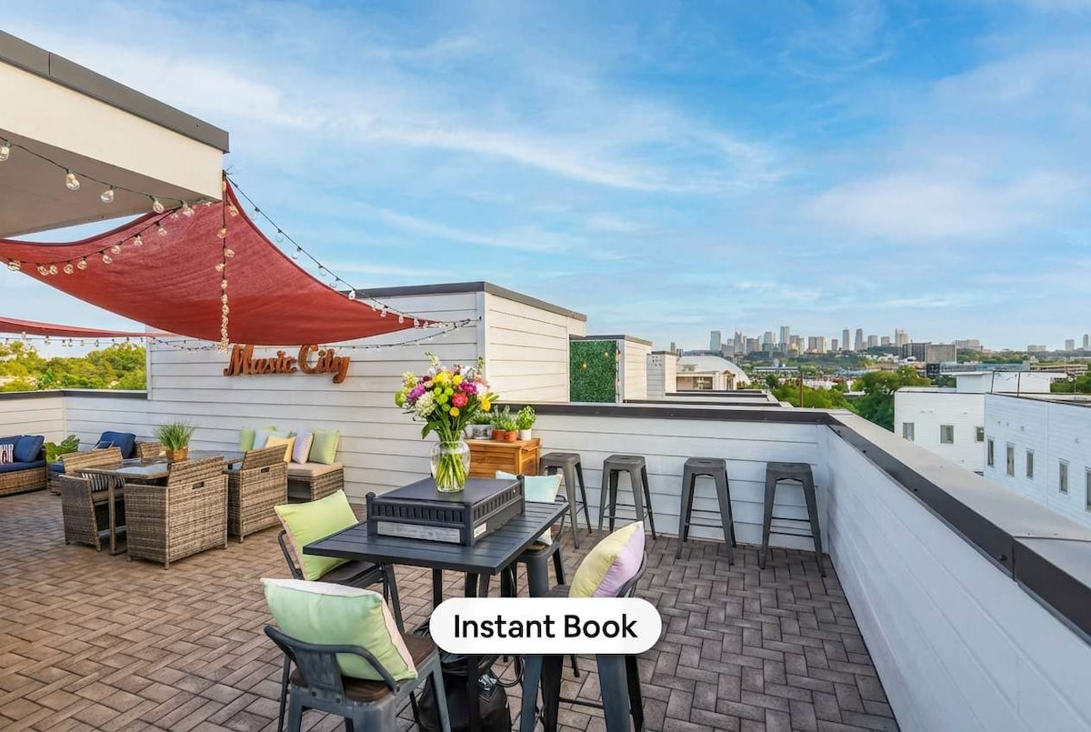 Moderna kuća u nizu u mirnom, prijateljskom kompleksu kuća u Istočnom Nešvilu. Savršeno za dva para ili malu grupu prijatelja! Obje spavaće sobe imaju sopstveno kupatilo. Ogromna soba savršena za zabavu sa 65" 4k UHD SmartTV-om. Podovi od tvrdog drveta, dobro opremljena kuhinja sa nadograđenim aparatima od nerđajućeg čelika, visokokvalitetnim čaršavima/peškirima, garažom za 2 automobila i balkonom za privatnost na 3. spratu! Samo 6 minuta vožnje Uberom/Lyftom do centra grada!