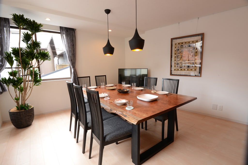 E1京都四條河原町地點非常好128m2的3+1房有電梯,餐桌可坐10人一起快樂用餐聚餐