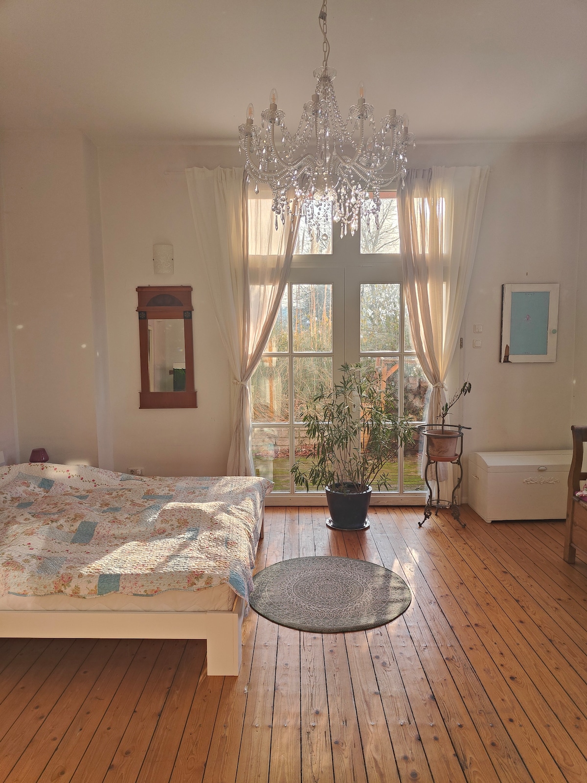 Poseban smeštaj sa karakterom potkrovlja. Potkrovlje dizajnirano sa puno ljubavi prema detaljima sa bračnim krevetom i kaučem na razvlačenje za 3–4 osobe. Prostrano kupatilo sa kadom/tuš-kabinom. Otvoreni prostor sa kuhinjom za samostalnu pripremu hrane. Privatni prostor na otvorenom sa stolom i baštenskim kaučem. Uprkos zajedničkom vlasništvu sa istorijskom kućom, potpuna nezavisnost i privatnost. Za ljubitelje prirode savršeno utočište na ivici šume. 8 minuta do jezera Baldeney. Javni prevoz (5 minuta do autobusa/14 minuta do S-Bahn-a)