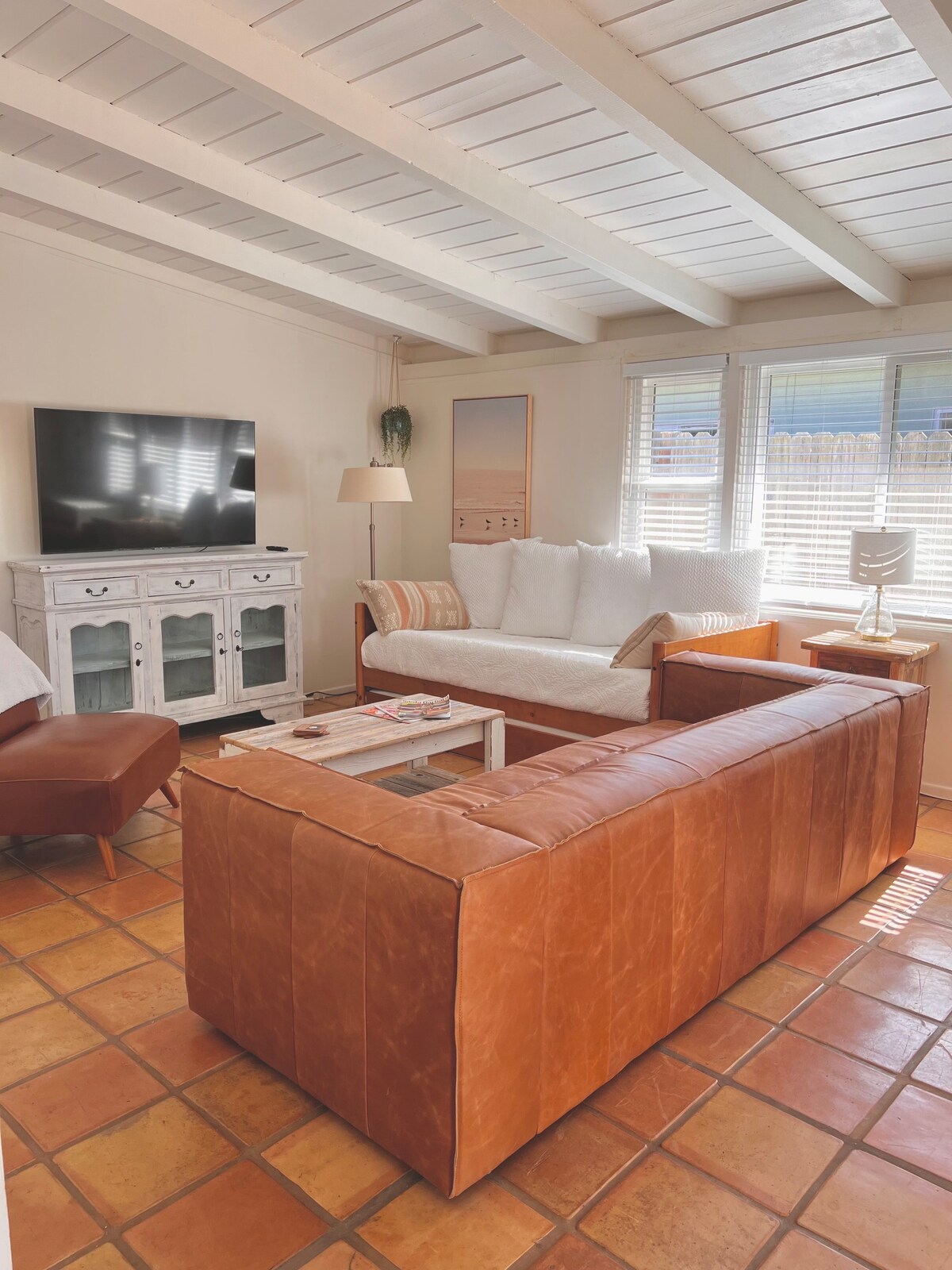Nedavno renovirana zadnja jedinica kuće. Odvojeni ulaz, spavaća soba, dnevna soba/2d spavaća soba, skrovito dvorište. Prostran, visok plafoni, besprekorno čist. Vrhunsko kupatilo, TV od 55inča, brzi Wi-Fi, novi futon u punoj veličini. Nalazi se 100 metara od 75 hektara Kirka i Majkla Daglasa, na kilometar plaže. Vrlo bezbedna, tiha četvrt „Mesa“, dva tržna centra. Centar grada je udaljen 2,5 milje. U dvorištu se sada nalazi sunčani prostor za sedenje. Betonski podovi su sada ispolirani u stilu restorana.