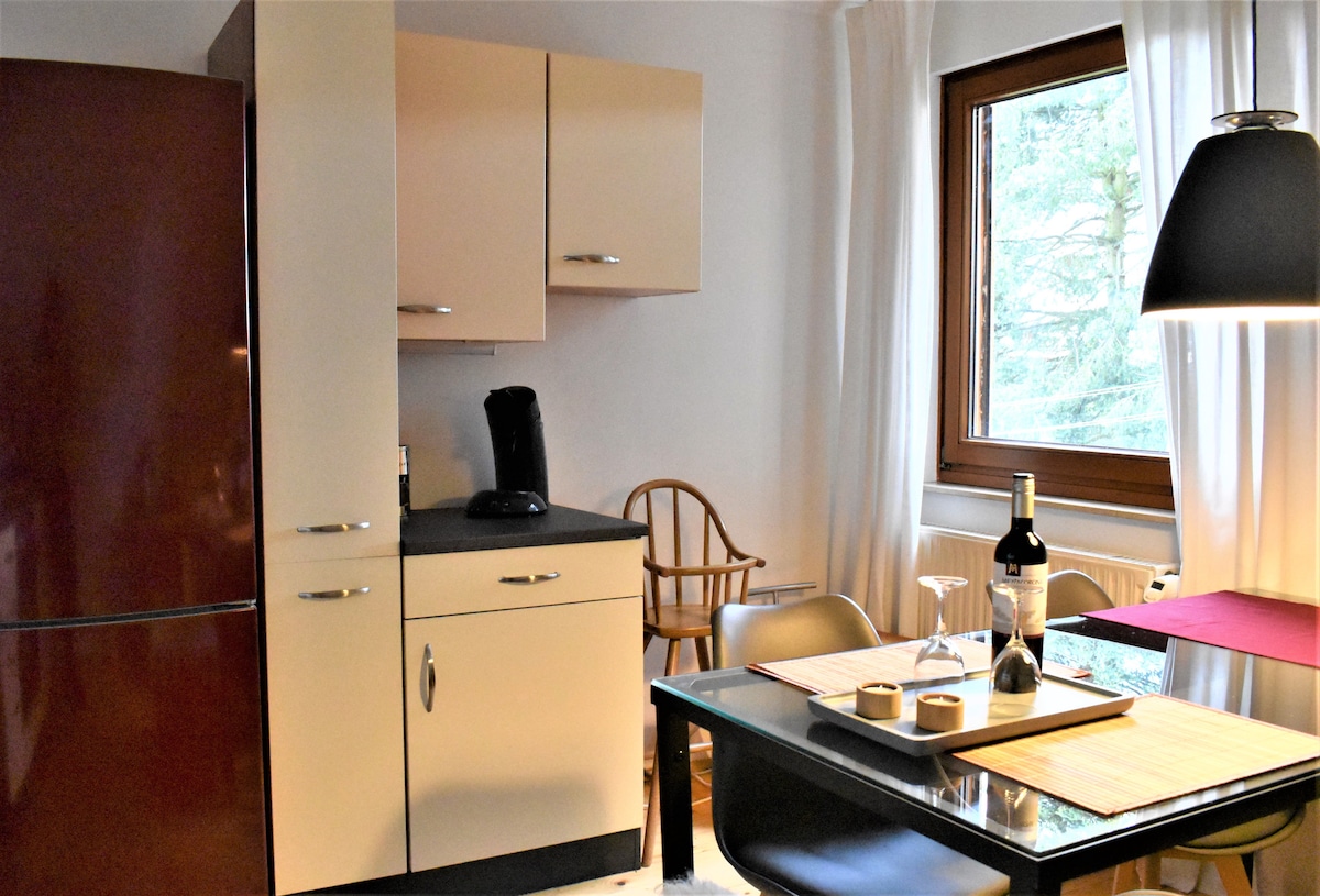 Opustite se u ovom mirnom i elegantnom stanu . Bilo da se radi o kratkom putovanju e-biciklom, poslovnom putovanju, kućnoj kancelariji ili kao stan na selu. Sa prelijepom baštom i veličanstvenim pogledom na prirodni rezervat idealan za ljubitelje prirode, planinare, bicikliste ili druge prijatne saputnike. Možete da zapalite e-grill, ispečete kobasice spolja ili samo sami krčkate na suncu. Struja dolazi iz solarne energije ili skladištenja baterija - naravno, u zavisnosti od vremenskih uslova.