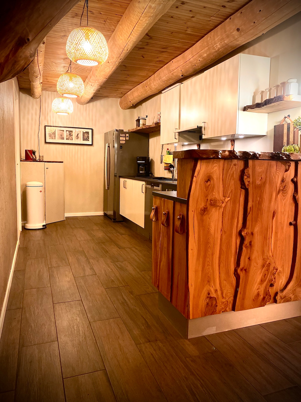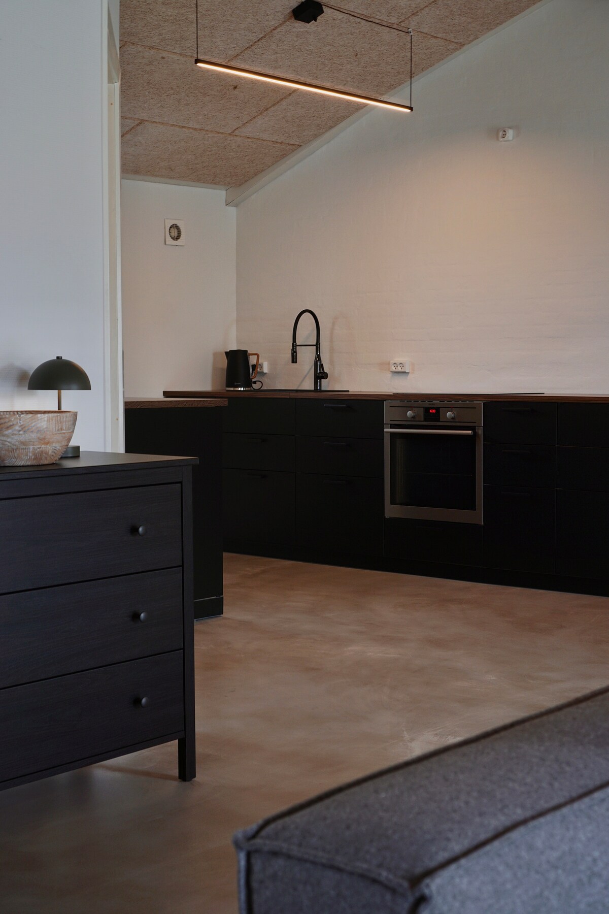 Svježe renovirana staja, pretvorena u minimalistički moderan stan. Potpuno opremljena kuhinja, kupatilo sa tuš-kabinom sa saunom i jedna spavaća soba sa bračnim krevetom. Otvoreni dnevni boravak i trpezarija, visoki plafoni i veliki prozori okrenuti prema zapadu. Unutrašnji kamin i podno grijanje u kuhinji i kupatilu. Okruženi širokim otvorenim pogledom, sa dinama na vidiku prema zapadu i prema selu sa svih strana. Izlazak i zalazak sunca su u potpunosti vidljivi.