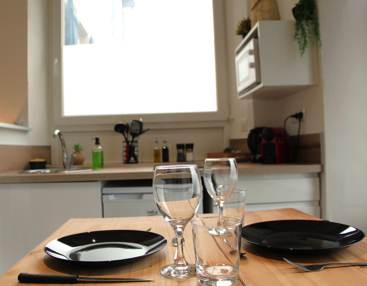 „Le Cocon de Soali” vas dočekuje u potpuno renoviranom okruženju u čahuri, smještenom u srcu istorijskog centra u STAROM GRADU - Belfortu. - 10m od Place Saint-Christophe gdje se nalazi većina restorana i barova u Belfortu - 10m od Place d 'Armes, a samim tim od katedrale Svetog Kristofera - 200 m od Lava - 10 minuta hoda do centra grada Sve je na pješačkoj ili biciklističkoj udaljenosti: idealno za otkrivanje grada, njegovog istorijskog nasljeđa i kulture.