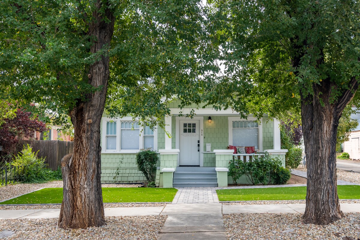 This beautifully remodeled 1914 home is two blocks from Whiskey Row and Downtown Prescott shops, theatres, restaurants, and courthouse square events. Professionally designed inviting home, two bedrooms each with a queen bed, two gorgeous bathrooms each with a full shower and bathtub, and a third private sleeping room with two twin beds. Living room has a grand accent wall, rich furniture, and a warm gas stove for restorative evenings at home. Welcome to Prescott, and welcome to our home.