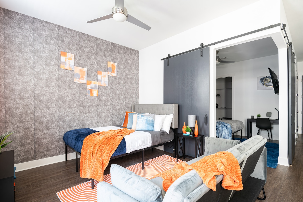 Zakoračite u našu pažljivo dizajniranu gostinjsku kuću u Istočnom Nešvilu - savršenu za parove i putnike koji putuju sami. Smješteni u jednoj od najpoželjnijih gradskih četvrti, bićete u blizini lokalnih favorita kao što su Mas Takos, Lira, Poluostrvo, Folk, Sjao Bao, Crvenokosa stranac i Turska i Vuk. Uživajte u živahnoj lokalnoj sceni ili se vozite 10 minuta do Brodveja, stadiona Nisan i drugih. Bilo da ste ovdje zbog odmora za vikend, mirnog resetovanja ili ukusa ritma Nešvila, ovo je vaša idealna baza.