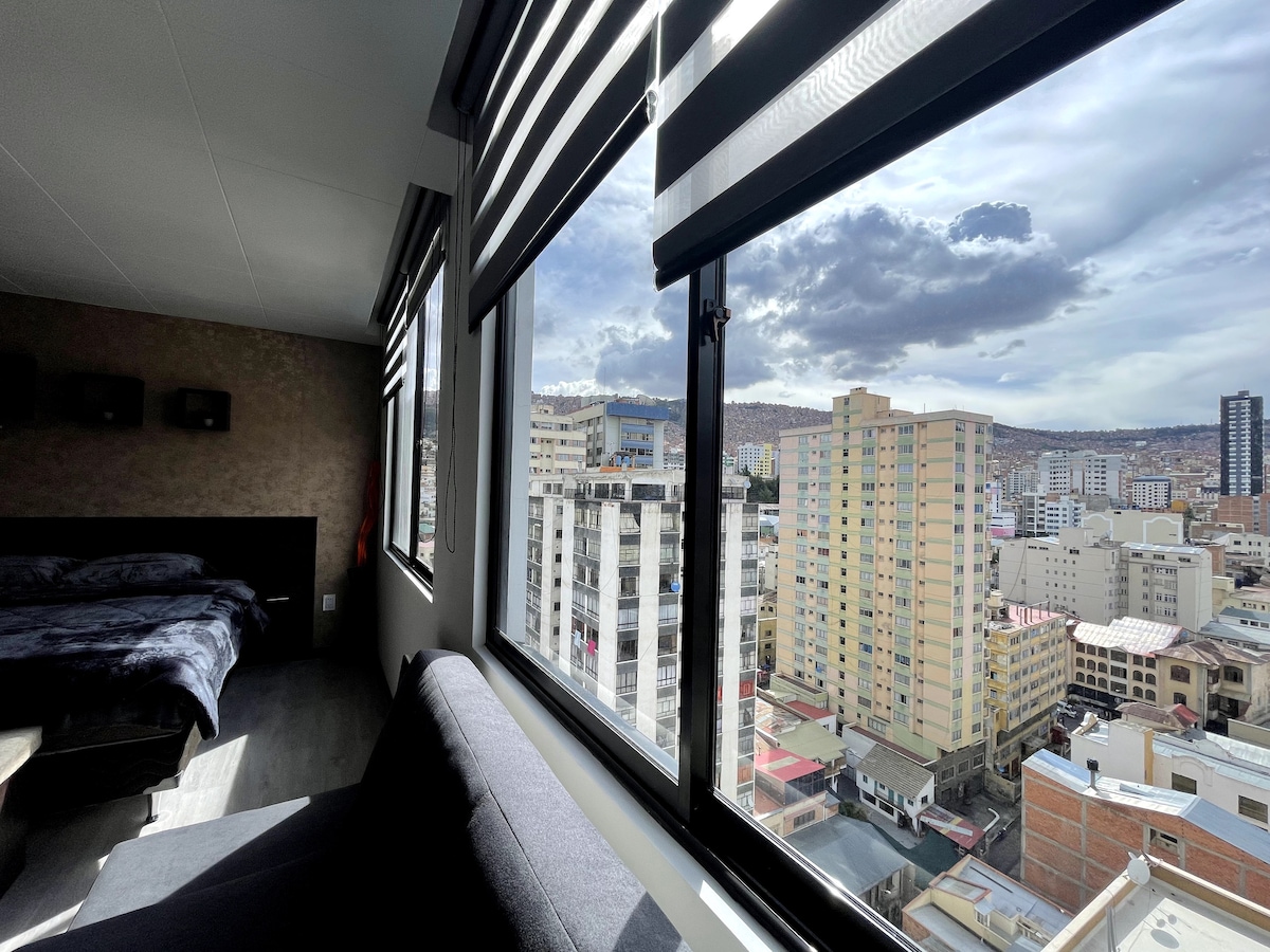 Uživajte u jedinstvenom doživljaju u našem panoramskom stanu 🏙️ u srcu La Paza. Okruženi restoranima, kafićima, atrakcijama, trgovima, pabovima, supermarketima i još mnogo toga. Smješteni na 18. spratu, nećete propustiti nijednu ljepotu La Paza. Stan je opremljen svime što vam je potrebno da biste se osjećali kao kod kuće🏠. Od praga ćete pronaći prevoz do svih mjesta u gradu🚌. Zgrada ima danonoćno obezbjeđenje i nadzor radi vaše bezbjednosti.