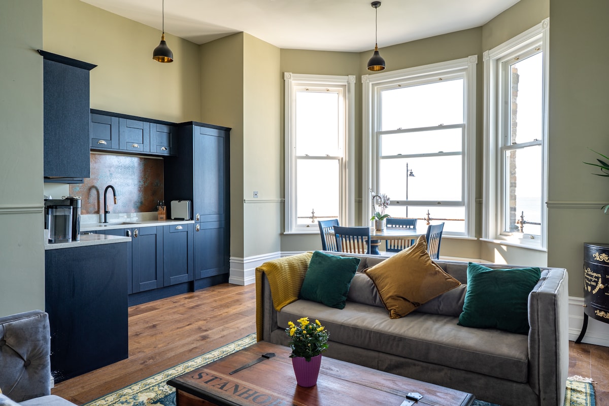 Elegantan smještaj uz plažu s luksuznom opremom, panoramskim pogledom na okean s džinovskih prozora i nenadmašnom lokacijom uz more. Izgubite se u ekskluzivnom pogledu u prvom redu na predivnu obalu Kenta. + Spektakularan, spektakularan pogled na englesku obalu + paket dobrodošlice + Podno grijanje + Ogromni prozori koji preplavljuju dom prirodnim svjetlom + Predivni hrastovi podovi i karakteristike mermera + 65-inčni 4K Ultra HD Smart TV + Vrhunska kuhinja sa smeg aparatima + Spoljašnji sto u bistrou