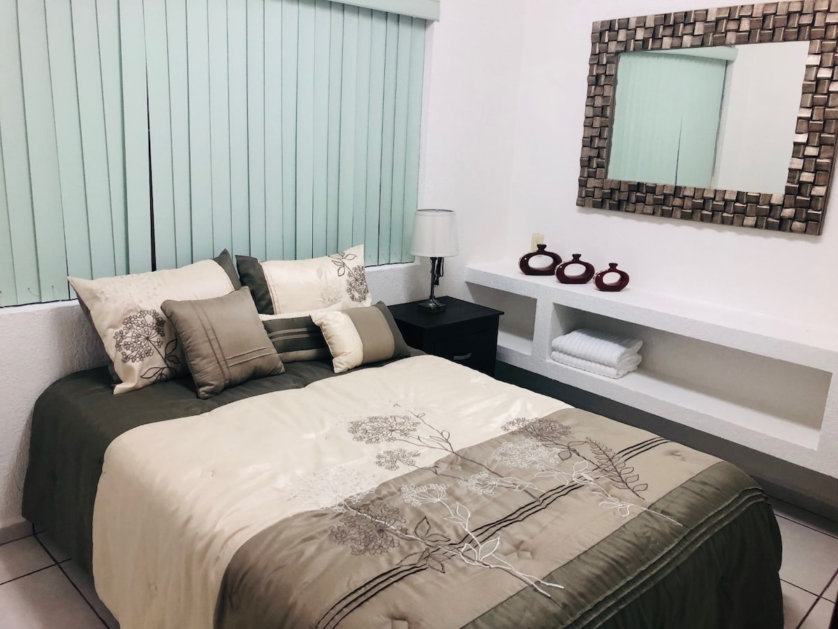 Opustite se na ovom jedinstvenom i mirnom odmoru na rivijeri Verakruz, uživajte u našem bazenu, plažama i cijelom šarmu Jaročoa. Naš apartman se nalazi u prizemlju i ima bračni krevet, privatno kupatilo, mikrotalasnu pećnicu, mini bar i aparat za kafu. Nalazi se ispred bazena i bašte. Udaljeni smo 5 minuta od tržnog centra El Dorado, 7 minuta od centra Boka del Rio i 5 minuta od Campos de Golf Villarica i Punta Tiburón. Svakodnevno čišćenje nije uključeno.