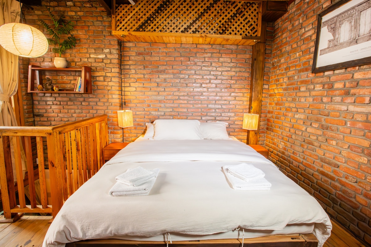 Pobegnite u elegantan studio evropskog stila na poslednjem spratu u centru Katmandua. Ovo privatno i tiho utočište savršeno je za samostalne putnike, parove ili radnike na daljinu, i udobno je za dva gosta. Uživajte u bračnom krevetu, namenskom radnom prostoru sa izuzetno brzim Wi-Fi mrežom i zajedničkoj krovnoj terasi sa roštiljem. Sve ovo je udaljeno samo 12 minuta hoda od živopisne četvrti Tamel, koja nudi spokojnu bazu za istraživanje grada.