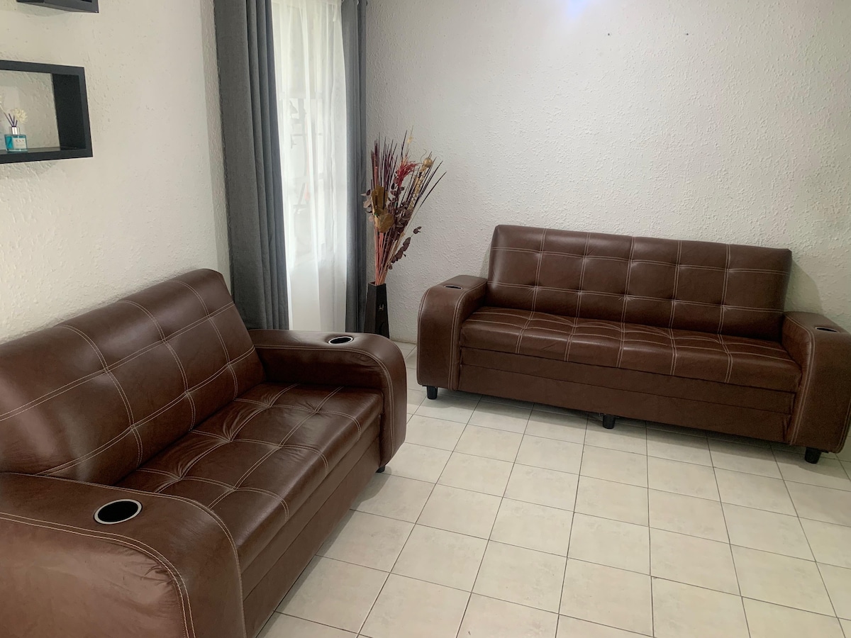 Hermoso y confortable Loft a 10 minutos del AIFA, a media hora de las pirámides de Teotihuacán. Ideal para descansar si viajas por trabajo o también en plan familiar. Estamos muy cerca del emblemático Casco de la Hacienda de Ojo de Agua, en una exclusiva y muy tranquila ubicación. Centros comerciales, estaciones del Mexibus, tiendas, restaurantes/bares, etc se encuentran a un radio de 10 minutos. Contamos con estacionamiento para dos vehículos.