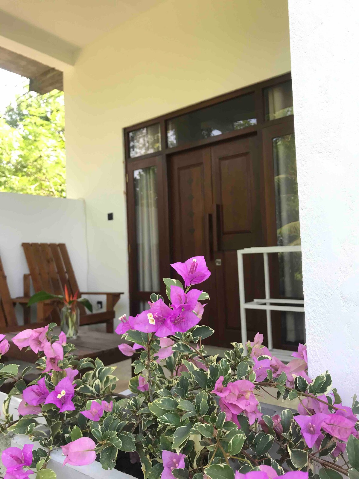 Privatna spavaća soba, 1 spavaća soba, kupatilo, u bašti našeg doma,pristup bazenu,viseća ležaljka i privatni spoljni prostor. Mora da su ljubitelji pasa,imamo dva psa. Mi smo LGBTQIA+ prijateljski raspoloženi. Objekat se nalazi u mirnom lokalnom selu,okružen poljima i paunovima. Posmatranje divljih životinja je odlično. U večernjim satima, pogledajte kako žive pravi Šri Lanki. Opustite se u ovom mirnom i elegantnom prostoru.