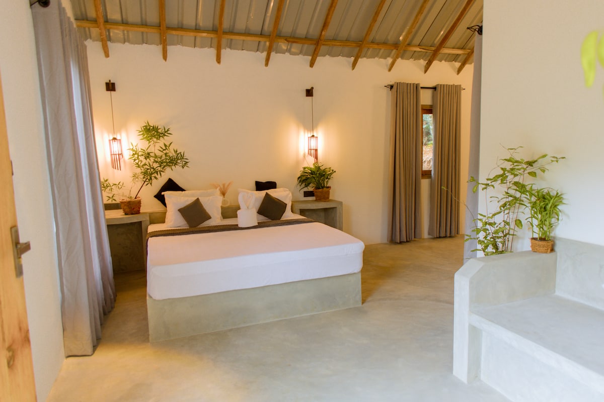 Doživite mir u Janidu Eco Villa, udobnom smještaju s 2 spavaće sobe samo 2,9 km od plaže. Smješten usred bujnog zelenila, nudi zadivljujući pogled na spokojan kanal i živopisna rižina polja. Vila ima jedan krevet u privatnoj spavaćoj sobi, a drugi u dnevnom boravku, hlađen jednim klima-uređajem u dnevnom boravku. Sadržaji uključuju frižider, električno kuvalo za vodu, toplu vodu i kuhinjsku opremu, što ga čini savršenim mjestom za opuštanje i praktičnost.