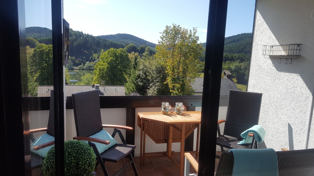 BALKON sa POGLEDOM NA JEZERO Hillebachsee Winterberg
