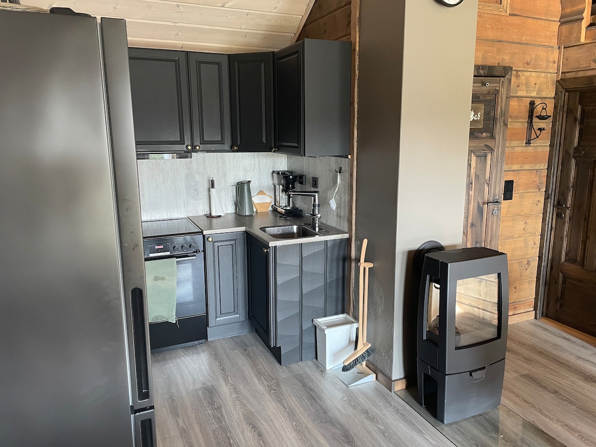 Lys hybel i nytt hus(2018), et soverom, bad med dusj og vaskemaskin! Kjøkkenkrok til å lage mat! Stue med sofa, bord og stol, dobbeltseng og stort skap på soverom. Sovesofa og mulighet for ekstra madrass. Det står en kaffetrakter på kjøkkenet. Barnevennlig leilighet og uteområder. Mulighet til å låne barneseng. Perfekt for enslig/par, med et lite barn . Sovesofa kan slås ut, men er dessverre meget hard. Parkering rett utenfor. Ikke el. Bil lading, men ladestasjoner like i nærheten