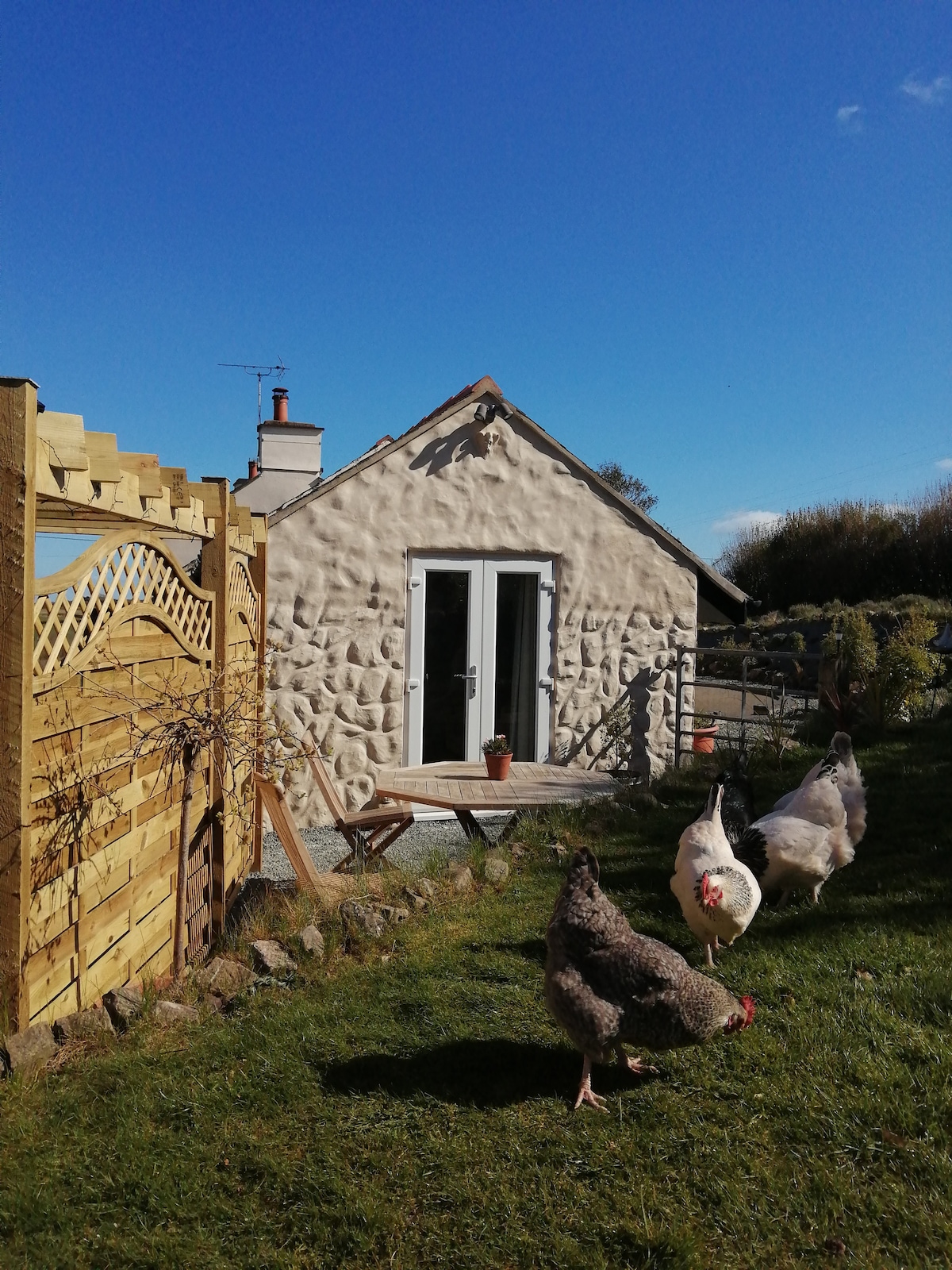 Secluded, modern interior situated in a former farm yard and paddock (simple exterior consisting of timber cladding & stone). Accommodation also benefits from a peaceful village location. Private south facing garden (sun trap), directly related to your own unique living space. Enjoy a good pub meal and a stroll around the Carew Castle & Mill Pond. Plenty of cycling routes on offer, coastal footpaths & nearby tourist destinations - Tenby, Saundersfoot & Pembroke... ideal base to explore.